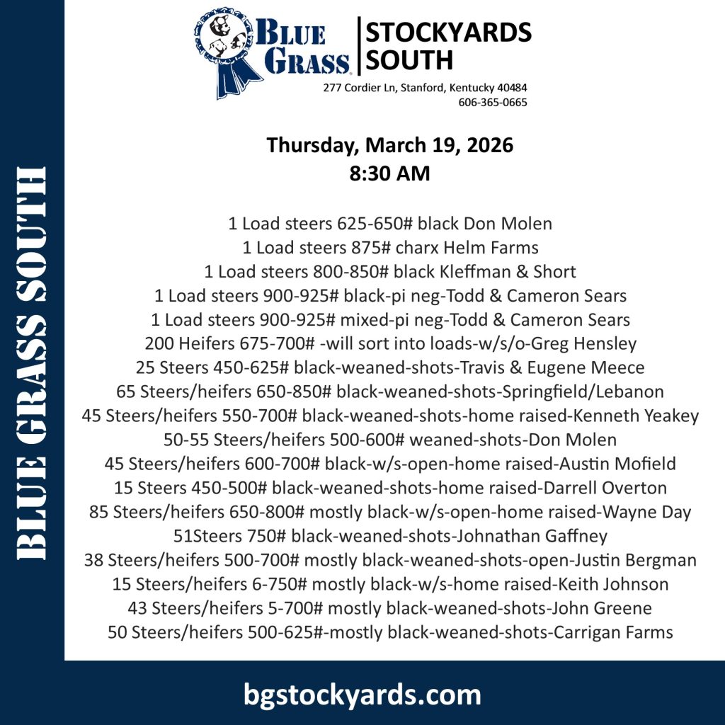 Date Mar 26 2026 Time 8:30 am - 5:00 pm South-Stanford Cattle Sale TH Share this event + Add to Google Calendar + iCal / Outlook export 00 days 00 hours 00 minutes 00 seconds